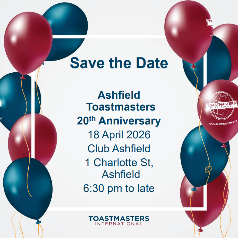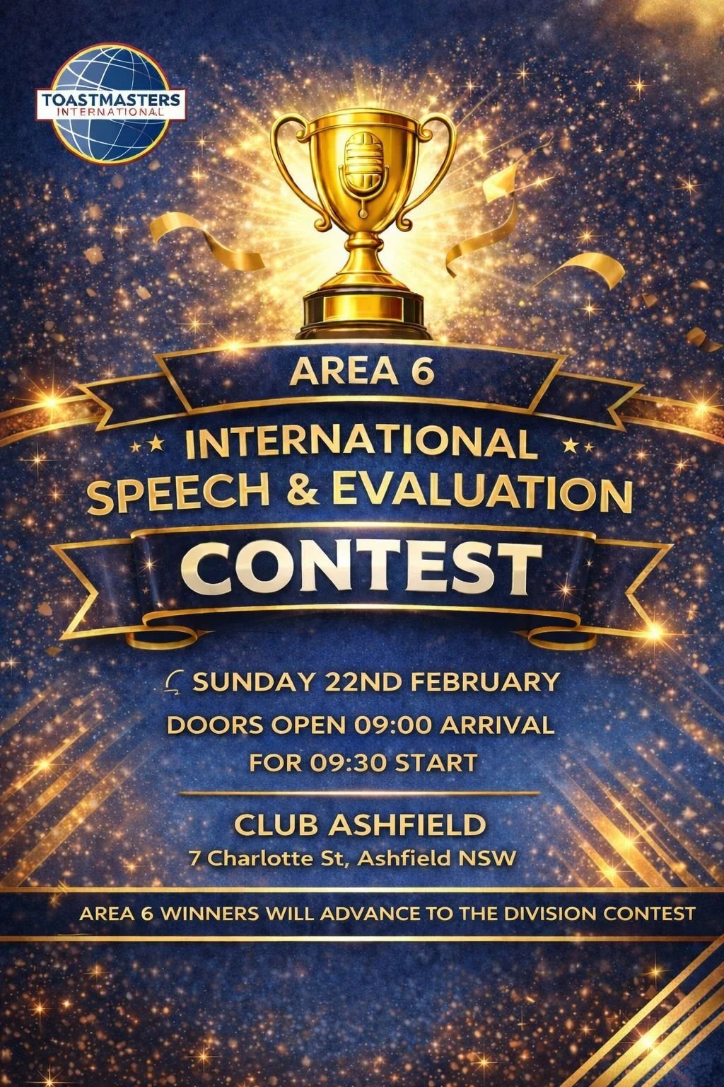 Join us for an exciting day of Toastmasters. Come along and support your Area Contest winners!
