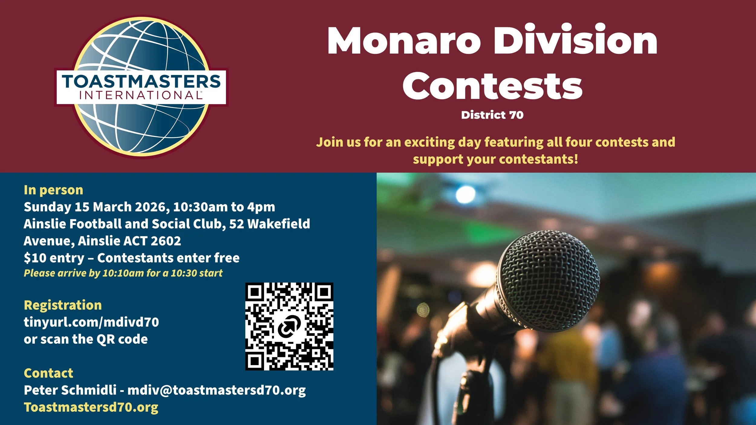 Contact: Peter Schmidli - mdiv@toastmastersd70.org