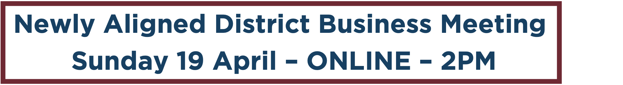 Newly Aligned District Business Meeting - ONLINE Sunday 19 April, 2pm